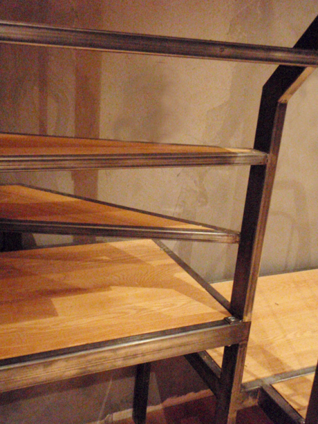 © Stéphane OLIVIER escalier 15 marches + garde corps structure acier brossé, fer béton,habillage frêne commande particulier (2010)